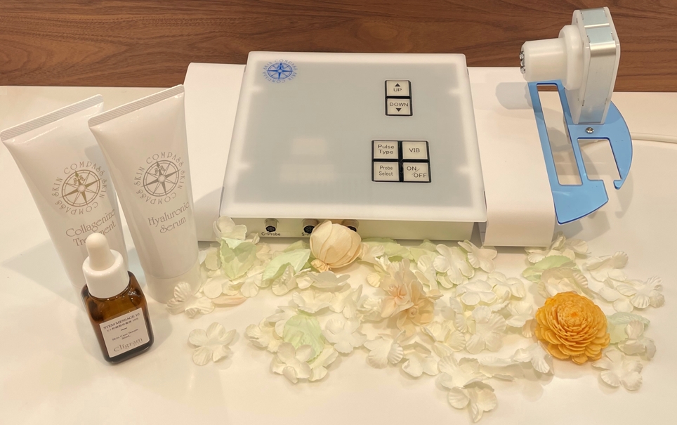 ・ヒアルロン酸やコラーゲンを浸透させることによる『たるみ』や『小じわ』の改善『ハリ』『潤い』の持続